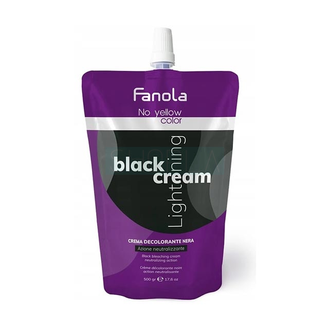 Fanola No Yellow Black Cream to rozjaśniacz w kremie, dzięki któremu zmienisz dotychczasowy kolor włosów o 7-8 tonów. Preparat zawiera bardzo mocne mikro-pigmenty, które pozwalają stworzyć jednolite, chłodne, popielate odcienie blond. Kolor jest równy na całej długości pasm, pełny blasku, nasycony i wyjątkowo trwały. Rozjaśniacz Fanola No Yellow Black Cream został wzbogacony pielęgnującymi olejami, dba więc nie tylko o nieskazitelny wygląd włosów, ale także o ich kondycję.