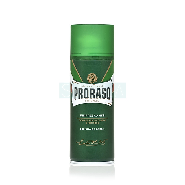 Proraso Schiuma da barba to odświeżająca pianka do golenia. Skutecznie zmiękcza zarost i pozwala się go w szybki sposób pozbyć. W składzie produktu znajduje się chłodzący i odświeżający mentol, a także eukaliptus – ma on właściwości antybakteryjne, przeciwzapalne, a także przyspiesza regenerację skóry. Proraso Schiuma da barba świetnie sprawdza się przypadku każdego rodzaju skóry.