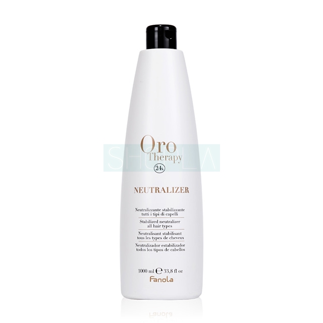 Neutralizator Fanola Oro Therapy Gold to produkt dedykowany do kończenia zabiegu trwałej ondulacji, który utrwala skręt włosów i przywraca im odpowiednie pH po użyciu płynu do trwałej. Wzbogacony jest on mikroaktywnym 24-karatowym złotem, keratyną oraz olejkiem arganowym, które mają korzystny wpływ na kondycję włosów.