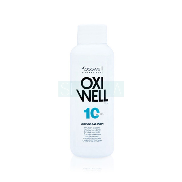 Kosswell Oxiwell 3% - woda utleniona w osnowie kremowej do wykonywania zabiegów fryzjerskich na włosach. Posiada stabilizatory utleniaczy najwyższej jakości stosowanych do koloryzacji i rozjaśniania włosów. Dzięki temu sprawia że zabiegi chemiczne są bezpieczniejsze i łagodniejsze dla struktury włosów. Woda utleniona występuje w kilku stężeniach: 10vol. - 3%, 20vol. - 6%, 30vol. - 9%, 40vol. -12%.