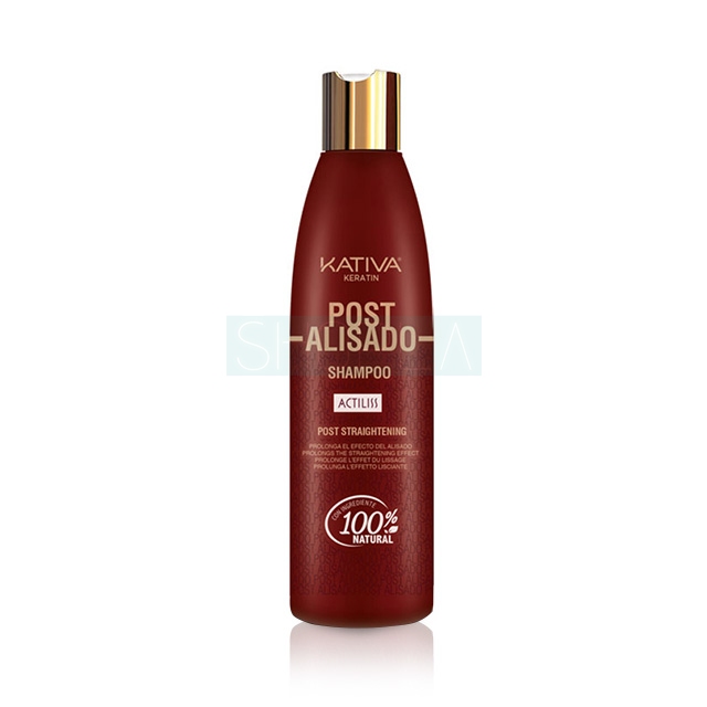 Szampon Kativa Post Alisado Keratina służy do pielęgnacji włosów po trwałym prostowaniu. Jego receptura oparta jest na keratynie i oleju arganowym. Substancje te pozytywnie wpływają na kondycję i wygląd włosów. Regenerują włókna włosów, odżywiają je i wzmacniają. Co więcej, zwalczają wolne rodniki i uodparniają kosmyki na działanie innych czynników zewnętrznych. Kativa Post Alisado Keratina podkreśla i znacznie przedłuża efekty prostowania. Pozostawia pasma idealnie gładkie, zdyscyplinowane i lśniące.