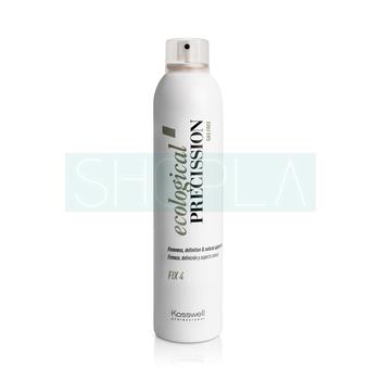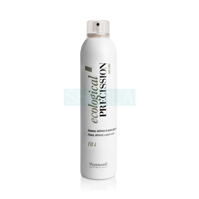 Kosswell Precission Ecological Strong Fixing to profesjonalny lakier do włosów bez gazu. Zapewnia maksymalną trwałość, a także wysoką jędrność i elastyczność włosów przy swojej bezpiecznej dla środowiska, ekologicznej formule. Dzięki specjalnie opracowanej recepturze lakier do włosów bez aerozolu nie skleja i nie obciąża włosów zapewniając jednocześnie odpowiednie utrwalenie i naturalny wygląd. Nie pozostawia osadu, nie kruszy się oraz łatwo się wyczesuje. Po zastosowaniu jako końcowy szlif uzyskuje się natychmiastowy efekt utrwalenia. Pozostawia na włosach naturalne wykończenie. Ponadto daje im połysku i lekkości na cały dzień chroniąc je przed szkodliwym działaniem warunków atmosferycznych. Utrwala fryzurę na poziomie 4.