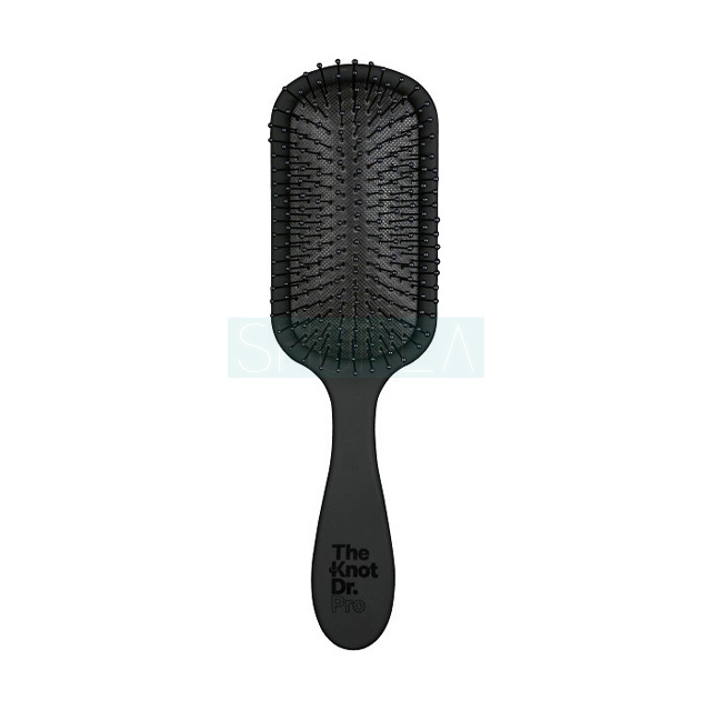 Szczotka do włosów The Knot Dr. PRO Black doskonale radzi sobie nawet z mocno poplątanymi pasmami. Rozplątuje wszystkie napotkane na swojej drodze przeszkody. Z łatwością rozczesuje włosy, a przy tym jest dla nich bezpieczna. Nie szarpie, nie wyrywa i nie łamie kosmyków. Została wykonana z wysokiej jakości materiałów, odpornych na uszkodzenia. Jest lekka, poręczna i bez wątpienia, będzie Ci towarzyszyć latami.