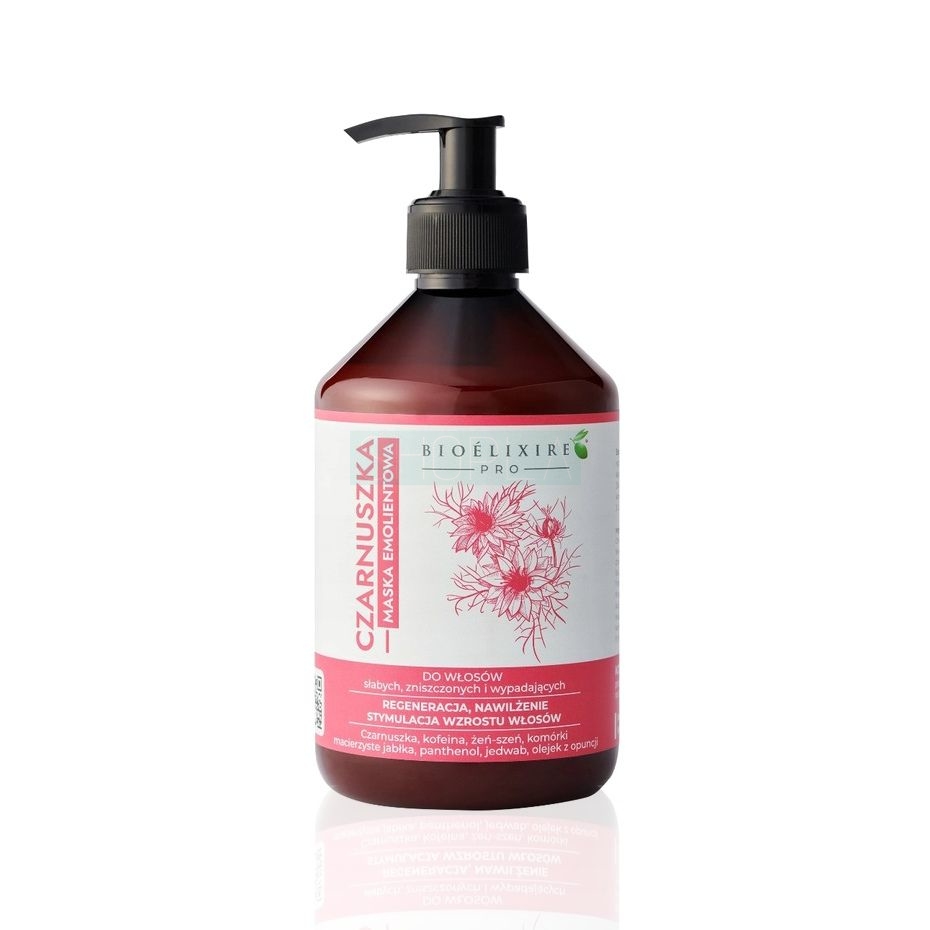 Bioelixire Pro z czarnuszką to wszechstronna maska przeznaczona do włosów zniszczonych, przesuszonych i osłabionych. Produkt łączy moc czarnuszki z kofeiną, żeń-szeniem, bergamotką, jedwabiem, panthenolem, olejem z opuncji oraz komórkami macierzystymi jabłka. Dzięki temu maska intensywnie regeneruje włosy, odżywia cebulki, ogranicza wypadanie i wspiera walkę z łupieżem, pozostawiając pasma miękkie, gładkie i odporne na uszkodzenia.