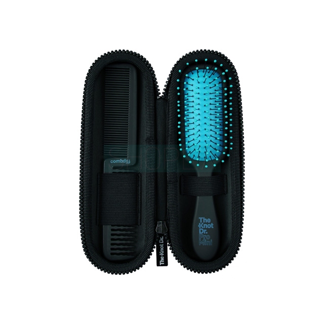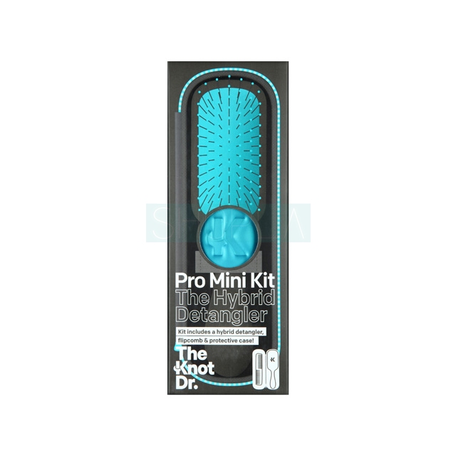 The Knot Dr. PRO Mini Kit Marine to zestaw złożony ze szczotki PRO Mini oraz grzebienia. Akcesoria zamknięte są w praktycznym etui, które zapewnia im skuteczną ochronę przed zabrudzeniem i uszkodzeniem. Z pomocą tych produktów z łatwością rozczeszesz nawet mocno poplątane pasma. Zarówno szczotka, jak i grzebień wykonane zostały z wysokiej jakości materiałów, dzięki czemu możesz mieć pewność, że posłużą Ci latami.