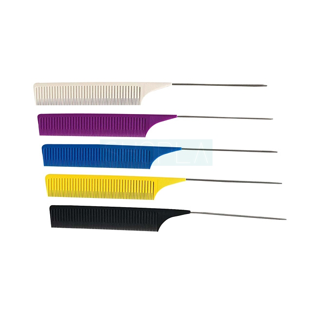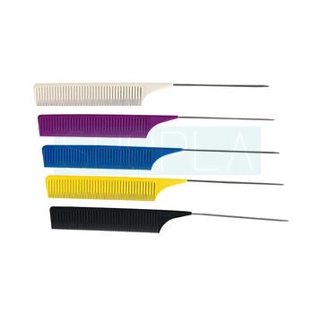 Profesjonalny grzebień do pasemek znacznie ułatwia pracę. Posiada metalowy szpikulec, którym z łatwością wydzielisz z włosów nawet najcieńsze pasma. Jest bardzo lekki i poręczny, a przy tym niezwykle wytrzymały. Został wykonany z wysokiej jakości materiałów, odpornych na działanie substancji chemicznych.
