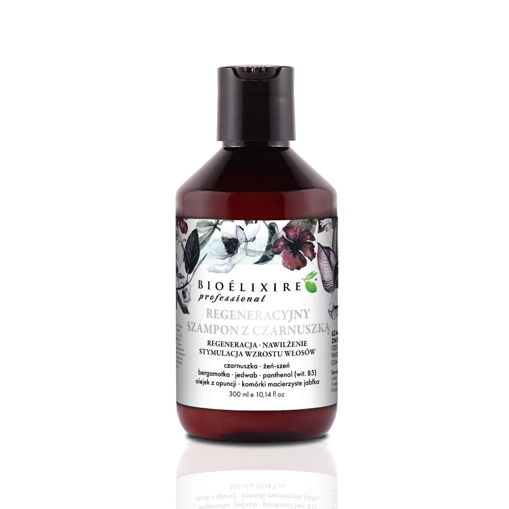 Formuła szamponu Bioelixire Professional z czarnuszką została opracowana z myślą o kompleksowej regeneracji włosów i skóry głowy. Składniki aktywne wspomagają odbudowę włókien włosa, wzmacniają cebulki oraz poprawiają kondycję pasm. Szampon działa ochronnie, przywraca miękkość i sprawia, że włosy wyglądają zdrowo oraz są pełne blasku.