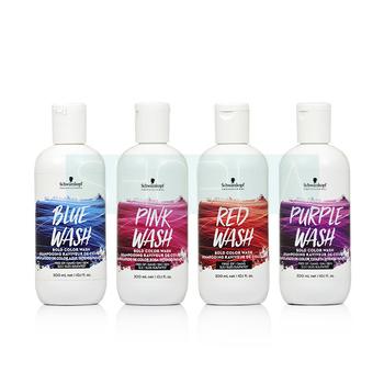 Schwarzkopf Bold Color Wash to szampon nadający włosom oryginalny, tymczasowy kolor. Dostępny jest w 4 nasyconych, intensywnych odcieniach: niebieskim, czerwonym, różowym i fioletowym. Poza tym, że pozytywnie wpływa na wygląd włosów, dba także o ich kondycję. Został wzbogacony odżywczym olejem marula i nawilżającym pantenolem.