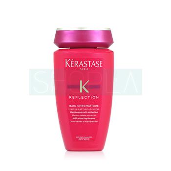 Kerastase Reflection Bain Chromatique to szampon przeznaczony do pielęgnacji włosów koloryzowanych i z pasemkami. Tego typu pasma potrzebują silnego wsparcia, gdyż zabiegi chemiczne mogą negatywnie wpływać na ich kondycję. Produkt ten został wzbogacony olejem z otrębów ryżowych i witaminą E. Dzięki temu włosy zyskują intensywne odżywienie, wzmocnienie i ochronę przed działaniem wolnych rodników. Co więcej, Kerastase Reflection Bain Chromatique w dużej mierze swoje działanie opiera na systemie Capture Advanced. Jest on odpowiedzialny za ochronę koloru włosów. Intensyfikuje go, chroni przed przedwczesnym wypłukiwaniem i dodaje mu blasku. Dzięki temu efekty stylizacji są spektakularne i trwałe.