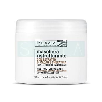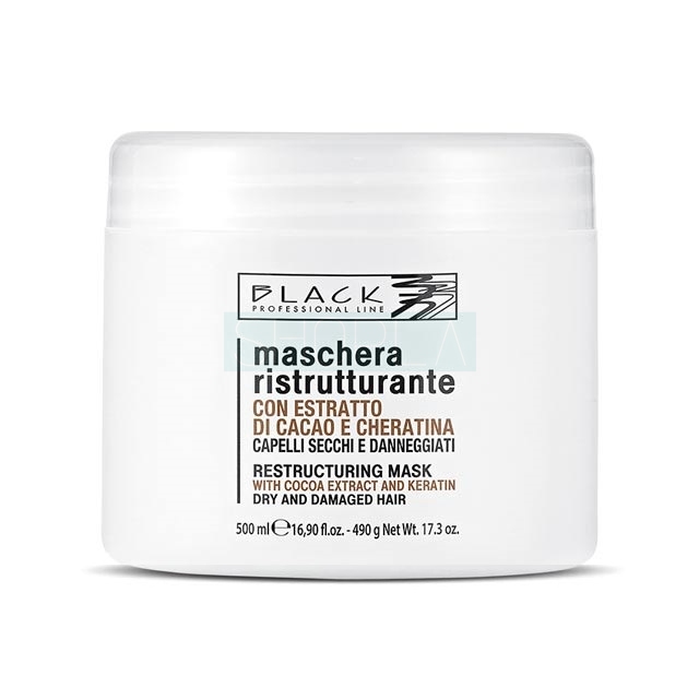 Maska Black Restructuring przeznaczona jest do pielęgnacji włosów zniszczonych. W jej składzie obecna jest keratyna - podstawowy budulec włosów, która wypełnia ubytki strukturalne, uelastycznia włókna i znacznie podnosi ich odporność na uszkodzenia. Z kolei ekstrakt z kakaowca wykazuje silne działanie antyoksydacyjne. Maska Black Restructuring dba także o optymalny poziom nawilżenia włosów. Pozostawia je jedwabiście gładkie, miękkie w dotyku i pełne blasku.