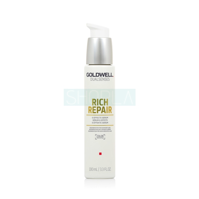 Innowacyjne serum z serii Goldwell Rich Repair zostało stworzone z myślą o suchych i zniszczonych włosach. Kosmetyk posiada silne właściwości regeneracyjne, dlatego idealnie sprawdzi się w przypadku zniszczonych i zmęczonych pasm. Serum działa natychmiast i przynosi zauważalne efekty już po pierwszym zastosowaniu. Innowacyjna formuła zawiera cenne składniki odbudowujące. Cząsteczki jedwabiu, wyciąg z czarnej wierzby, pantenol oraz zhydrolizowana keratyna odbudowują zniszczone partie włosów i zapewniają im skuteczną ochronę. W efekcie serum przeciwdziała rozdwajaniu się końcówek oraz łamliwości pasm.