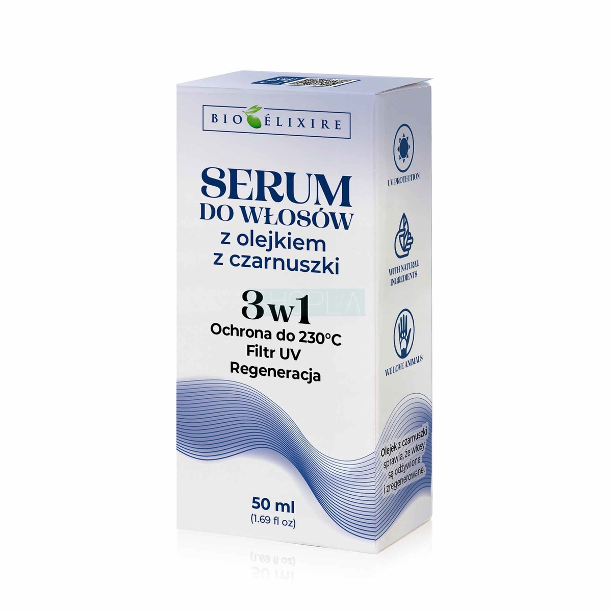 Serum z czarnuszką Bioelixire odbudowuje zniszczone włosy i znacznie zwiększa ich odporność na szkodliwe działanie czynników zewnętrznych, a tym samym na przyszłe uszkodzenia. Kosmetyk wykazuje silne właściwości odżywcze oraz nawilżające. Pozytywnie wpływa nie tylko na wygląd włosów, ale także na ich zachowanie i wygląd. Minimalizuje problem puszących się pasm, pozostawia je jedwabiście gładkie, lśniące i miękkie w dotyku.
