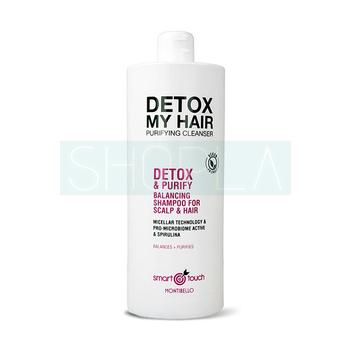 Montibello Smart Touch Detox My Hair to szampon micelarny detoksykujący, stworzony do codziennego stosowania, który skutecznie oczyszcza i detoksykuje włosy oraz skórę głowy. Produkt przywraca zdrowy stan mikrobiomu skóry głowy, jednocześnie zabezpieczając przed utratą koloru (pH 5,5). Szampon dedykowany jest zwłaszcza włosom silnie zanieczyszczonym kurzem, brudem, sebum, potem lub pozostałościami kosmetyków do stylizacji, ale ze względu na micelarną formułę, może być używany przy każdym rodzaju włosów. Posiada formułę wegańską, nie zawierającą parabenów, silikonów i siarczanów.
