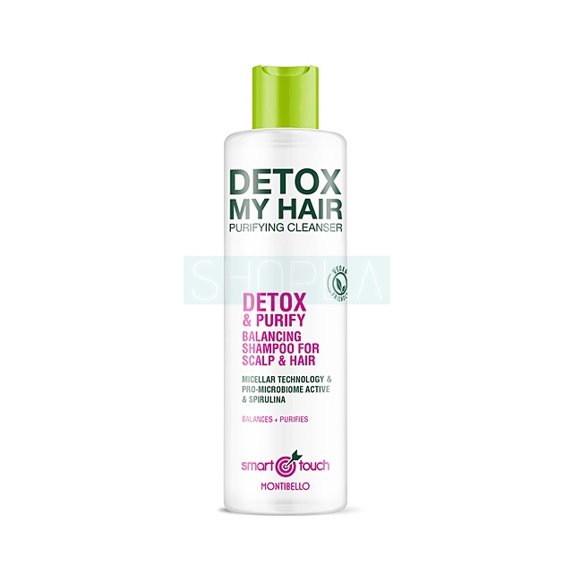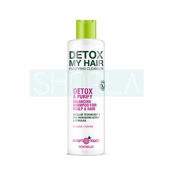 Montibello Smart Touch Detox My Hair to szampon micelarny detoksykujący, stworzony do codziennego stosowania, który skutecznie oczyszcza i detoksykuje włosy oraz skórę głowy. Produkt przywraca zdrowy stan mikrobiomu skóry głowy, jednocześnie zabezpieczając przed utratą koloru (pH 5,5). Szampon dedykowany jest zwłaszcza włosom silnie zanieczyszczonym kurzem, brudem, sebum, potem lub pozostałościami kosmetyków do stylizacji, ale ze względu na micelarną formułę, może być używany przy każdym rodzaju włosów. Posiada formułę wegańską, nie zawierającą parabenów, silikonów i siarczanów.