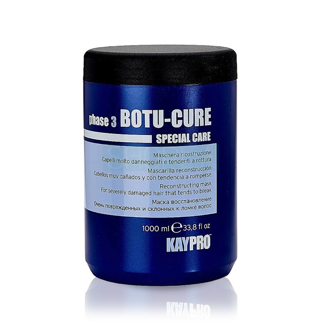 Maska KayPro Special Care Botu-Cure Phase 3 służy do pielęgnacji włosów zniszczonych. Natychmiast przywraca im nienaganną kondycję i zapobiega jej ponownemu pogarszaniu się. Peptydy roślinne odbudowują zniszczone włókna włosów i uodparniają je na działanie czynników zewnętrznych. Maska KayPro Special Care Botu-Cure Phase 3 ma silne właściwości odżywcze i wzmacniające. Ponadto, znacznie ułatwia rozczesywanie włosów.