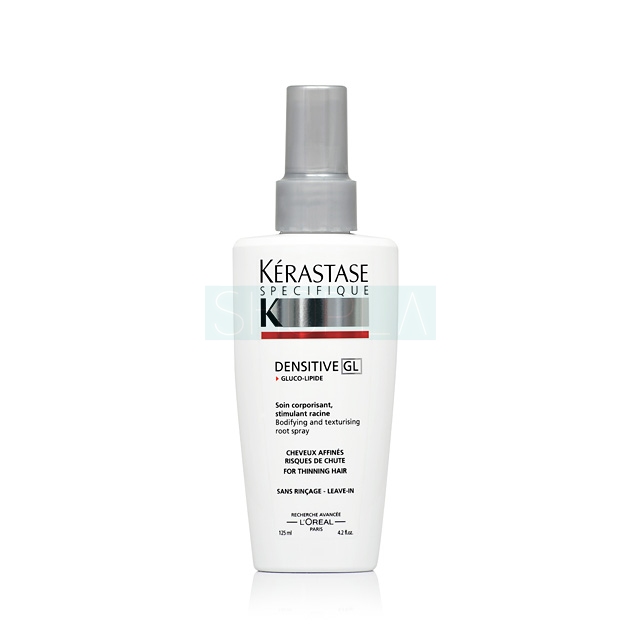 KERASTASE Specifique Densitive GL to profesjonalny spray przeciw wypadaniu włosów. Produkt wzbogacony został o innowacyjny kompleks Gluco-Impulsion, który stymuluje porost włosów od samego korzenia oraz witaminę B3, która widocznie ogranicza zarówno stałe, jak i okresowe wypadanie włosów.