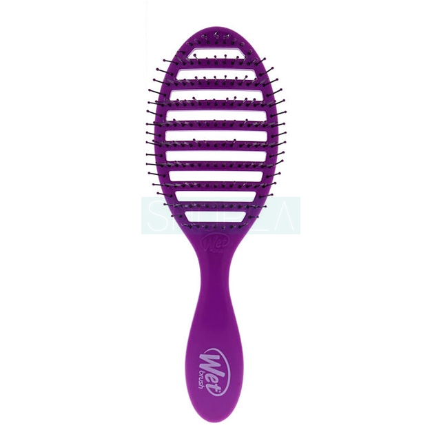 Wet Brush Speed Dry Purple to nowoczesna i wygodna szczotka do suszenia włosów, zaprojektowana w celu ułatwienia skutecznego procesu suszenia. Wyposażona w trwałe włosie odporne na działanie ciepła, delikatnie rozplątuje włosy podczas suszenia za pomocą suszarki. Wentylowany design pomaga w odprowadzaniu nadmiaru wody z włosów, przyspieszając tym samym czas suszenia.