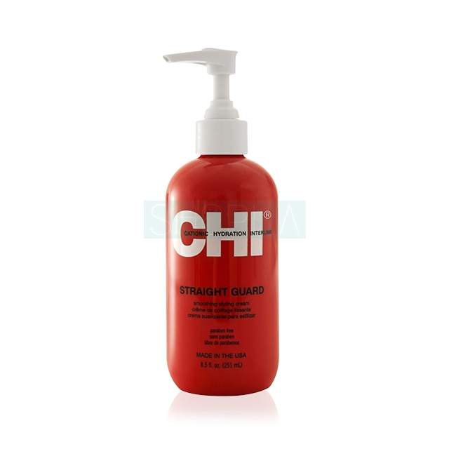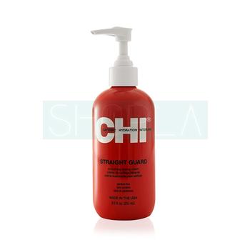 CHI Straight Guard to profesjonalny kosmetyk do pracy z włosami niezdyscyplinowanymi. Znacznie ułatwia ich codzienną stylizację, gdyż wygładza pasma i zapobiega ich puszeniu się. Produkt nie obciąża pasm i nie usztywnia kosmyków. Pozostawia włosy lekkie i pełne blasku.