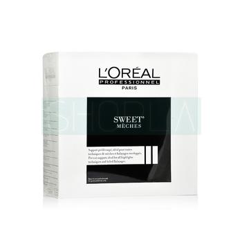 Loreal Sweet Meches to profesjonalna folia do wykonywania pasemek. Dzięki niej osiągniesz perfekcyjne efekty stylizacji. Pomaga ona w precyzyjnym nałożeniu preparatu, na wydzielone partie włosów. Loreal Sweet Meches to aż 50 metrów foli, którą możesz docinać w zależności od długości włosów. Dzięki temu, że jest przezroczysta, można na bieżąco kontrolować efekty koloryzacji. Folia charakteryzuje się dużą przyczepnością, dzięki temu nie zsuwa się z włosów.