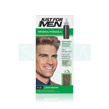 Szybkie odświeżenie naturalnego koloru włosów i pozbycie się pierwszych oznak siwizny umożliwi szampon koloryzujący Just For Men H-25. To produkt stworzony dla klientów poszukujących bezpiecznego, a jednocześnie trwałego efektu koloryzacji siwych pasm. To kosmetyk koloryzujący o innowacyjnej Formule no- drip. Jego zastosowanie odżywia pasma i poprawia ich wygląd. Just For Men ma formułę zawierającą cenne witaminy. Dzięki kompleksowi związków organicznych, na których bazuje ten kosmetyk, włosy stają się puszyste, grubsze i wyraźnie wzmocnione.