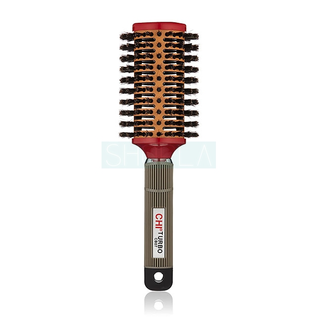 Szczotka CHI Turbo CB07 z naturalnym włosiem dzika przeznaczona jest do modelowania włosów szorstkich, kręconych i falowanych, długich i średniej długości. Tego typu włosie pozwala na skuteczne rozczesanie pasm i dodaje pasmom blasku. Szczotka CHI Turbo CB07 posiada ceramiczny cylinder, który bardzo szybko się nagrzewa i długo utrzymuje ciepło, dzięki temu proces suszenia jest nawet o 50% krótszy.