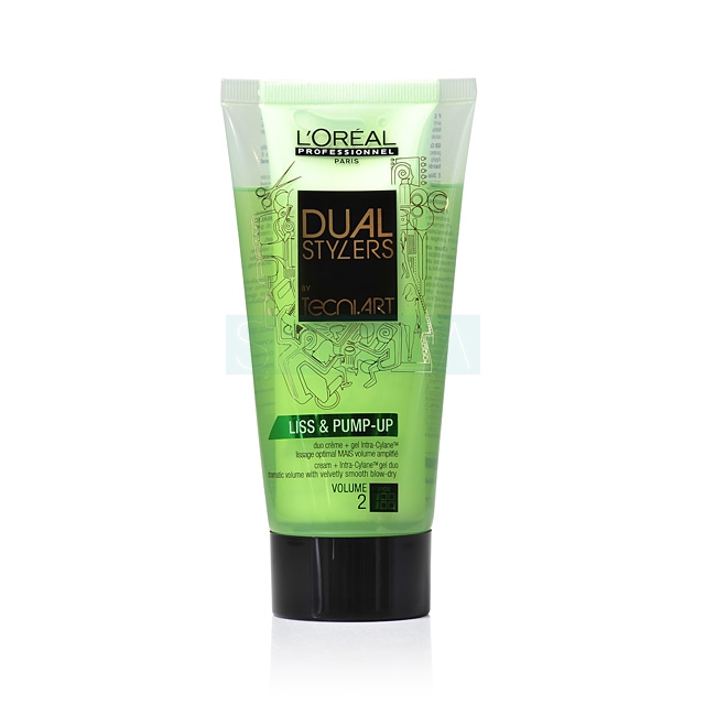 L’OREAL Professionnel Dual Stylers Liss & Pump-up to profesjonalny żelowy krem do włosów cienkich, który skutecznie wygładza pasma oraz nadaje im pożądanej objętości. Innowacyjność kosmetyku polega na połączeniu delikatnej konsystencji kremu z lekką formułą żelu, które gwarantują uzyskanie zaskakujących efektów.