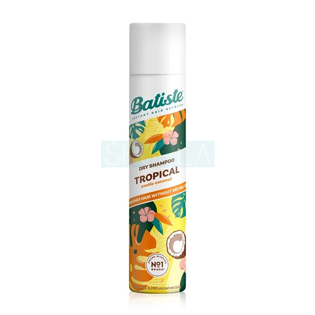 Batiste Tropical Dry Shampoo to suchy szampon o egzotycznym zapachu, łączącym owocowe aromaty melona, brzoskwini, banana i kokosa z nutami drzewa sandałowego oraz wanilii. Szampon nie wymaga użycia wody. Świetnie sprawdza się na przykład podczas podróży. Skutecznie pochłania sebum, przywracając włosom świeżość Produkty zaprojektowane są specjalnie do zastosowania bez użycia wody, pomiędzy myciami, idealne podczas podróży lub na co dzień. Szampon Tropical Dry Shampoo odświeży twoje włosy i otuli je przyjemnym, świeżym zapachem.