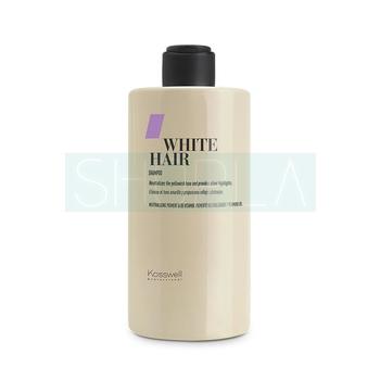 Kosswell White Hair Shampoo to szampon do włosów blond niwelujący niechciane odcienie. Zawiera aktywny pigment neutralizujący ciepłe tony powstałe na skutek zabiegów fryzjerskich, takich jak farbowanie czy rozjaśnianie. W zależności od wyjściowego odcienia pozwala uzyskać srebrzyste, szare czy fioletowawe refleksy na całej długości lub wybranych pasmach. Systematyczne stosowanie szamponu pozwala utrzymać efekty koloryzacji znacznie dłużej, a kolor pozostaje żywy i chłodny na dłużej. Posiada działanie zabezpieczające, chroniące włosy przed działaniem promieni słonecznych i warunków atmosferycznych. Ponadto dzięki pielęgnującym składnikom działa również pielęgnacyjne i regenerująco dodając włosom miękkości, blasku i sprężystości. Włosy są nawilżone, odporne na utratę wilgoci i gotowe na dalszą stylizację.